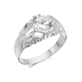 Silver Cubic Zirconia Signet Ring - F5126 Made in the UK Made in the UK