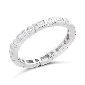 Silver Cubic Zirconia Band Ring - F6049
