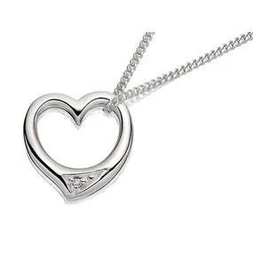 Silver Diamond Set Floating Heart Pendant And Chain - F3412