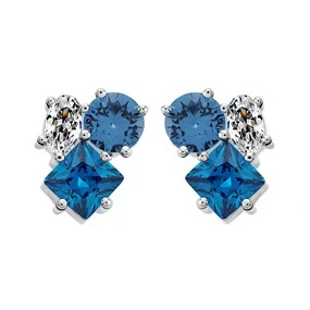 Silver Blue Cubic Zirconia Stud Earrings - F04159