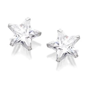 Silver Star Cubic Zirconia Stud Earrings - 8mm - F0344