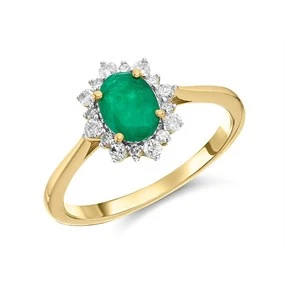 9ct Gold Oval Emerald And Diamond Cluster Ring - 20pts - D7617