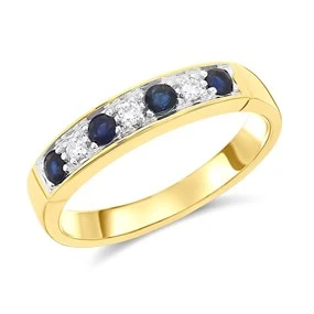 9ct Gold Diamond And Sapphire Half Eternity Ring - 6pts - D8101
