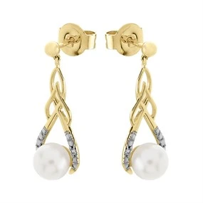 9ct Gold Diamond And Pearl Drop Earrings - 21mm drop - G1834