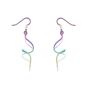 Reduced Ti2 Titanium Rainbow Spiral Hook Wire Earrings - 57mm drop - J19504 Made in the UK Made in the UK