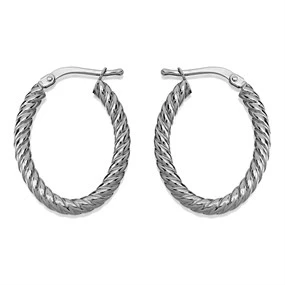 Save 9ct White Gold Twisted Oval Hoop Earrings - 24mm - G41148