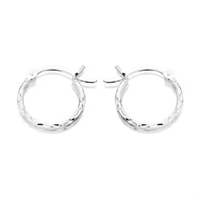 Silver Diamond Cut Hoop Earrings - 13mm - F1354