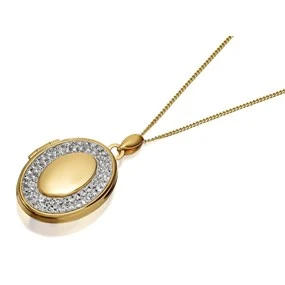 Save 9ct Gold Two Colour Crystal Oval Locket And Chain - R7212