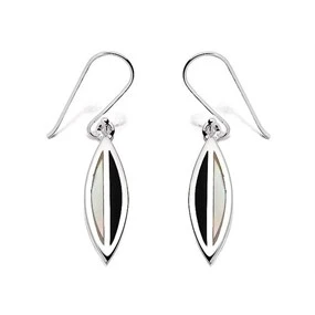 Silver Ellipse Onyx And Mother Of Pearl Hook Wire Earrings - 40mm drop - F0858