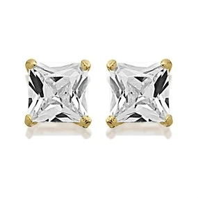 9ct Gold Princess Cut Cubic Zirconia Stud Earrings - 4mm - G32105