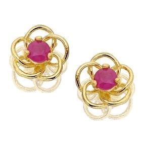 9ct Gold Ruby Flower Earrings - 5mm - G0208