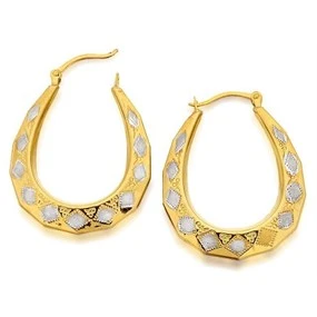 9ct Gold Three Colour Diamond Cut Oval Hoop Earrings - 18mm - G4914