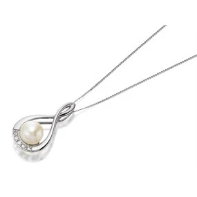 9ct White Gold Freshwater Pearl And Diamond Necklace - 5pts - EXCLUSIVE - R7723 Matching Item Available Matching Item Available