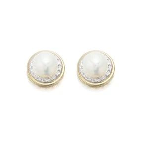 Reduced 9ct Gold Two Colour Freshwater Pearl Stud Earrings - 8mm - G0530