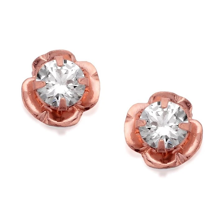 9ct Rose Gold Cubic Zirconia Flower Stud Earrings - 6mm - G2713