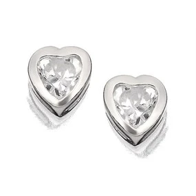 Silver Heart Cubic Zirconia Stud Earrings - 5mm - F0452