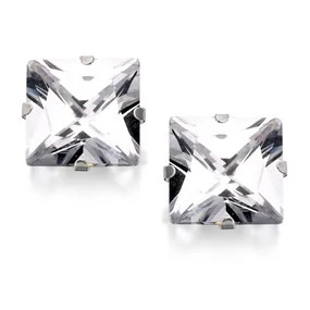 Silver Square Cubic Zirconia Stud Earrings - 9mm - F0362