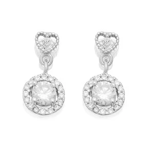 Silver Cubic Zirconia Halo Drop Earrings - 14mm drop - F11001