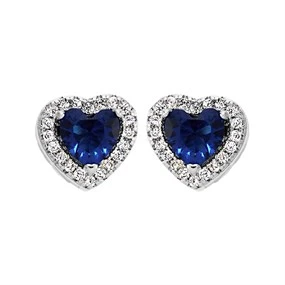 Silver Blue Cubic Zirconia Heart Halo Stud Earrings - 9mm - F04042