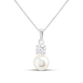 Silver Cultured Freshwater Pearl And Cubic Zirconia Necklace - F35152