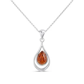 Silver Amber Teardrop Necklace - F34102