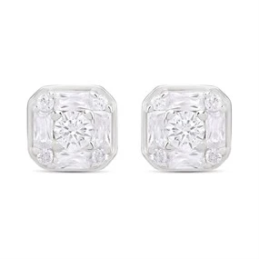 Silver Square Cubic Zirconia Stud Earrings - 10mm - F04059