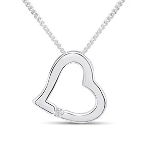 Silver Cubic Zirconia Floating Heart Necklace - F35151