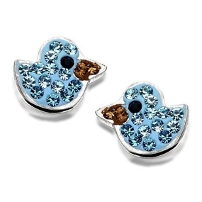 Silver Aqua Crystal Duck Stud Earrings - 7mm - F0475