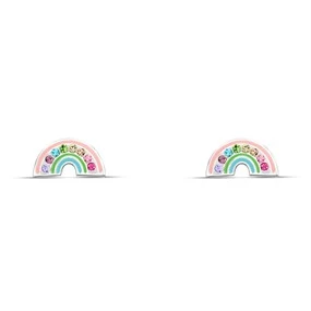 Silver Enamel Crystal Rainbow Stud Earrings- 10mm - F04234