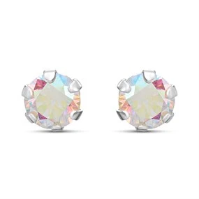 Silver Enamel White Daisy Stud Earrings- 7mm - F0156