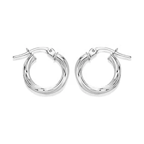 9ct White Gold Twist Hoop  Earrings - 14mm - G41160