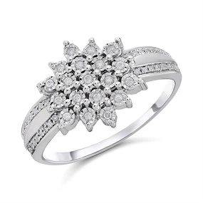 Star Buy 9ct White Gold Diamond Cluster Band Ring - 1/3ct - D71175 1/3 Carat Diamond Weight 1/3 Carat Diamond Weight