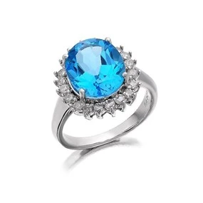 9ct White Gold Diamond And Blue Topaz Cluster Ring - 1/2ct - D7959 1/2 Carat Diamond Weight 1/2 Carat Diamond Weight
