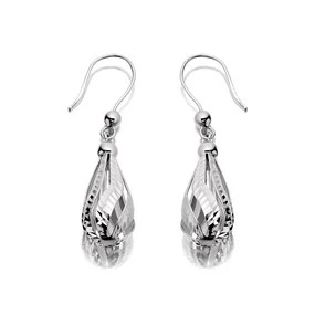 Star Buy 9ct White Gold Pear Drop Swirl Hook Wire Earrings - 20mm drop - G1097