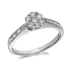 9ct White Gold Diamond Cluster Ring - 1/2ct - D6811 1/2 Carat Diamond Weight 1/2 Carat Diamond Weight