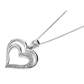 Save 9ct White Gold Diamond Double Heart Necklace - D56121 Matching Item Available Matching Item Available