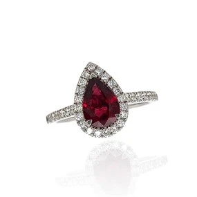 9ct Gold Pear Ruby And Diamond Cluster Ring - 7pts - D7438
