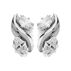 Save 9ct White Gold Crystal Teardrop Hook Wire Earrings - 34mm drop - G1071