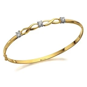 Reduced 9ct Gold Cubic Zirconia Double Kiss Bangle - G8412