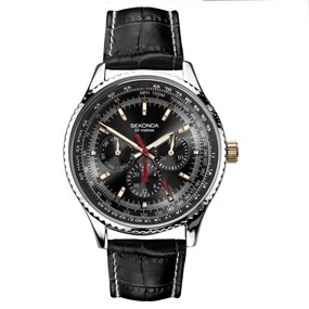 Sekonda 30112 Chronograph Black Leather Strap Watch - W31406 100m Water Resistant 100m Water Resistant