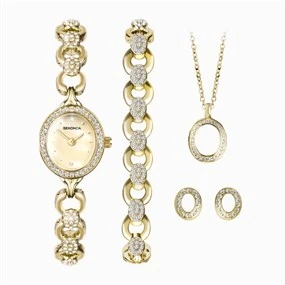 Save Sekonda 49020 Gold Plated Bracelet, Necklace, Earrings And Watch Gift Set - W32302
