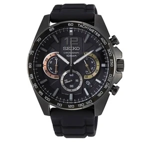 Seiko SSB349P1 Black IP Chronograph Black Resin Strap Watch - W24163 100m Water Resistant 100m Water Resistant