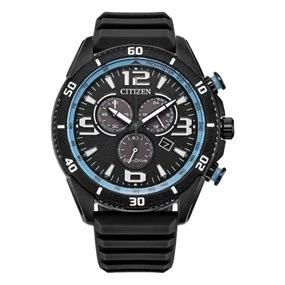 Citizen AT2587-02E Sports Chronograph Black Strap Watch - W38469 100m Water Resistant 100m Water Resistant