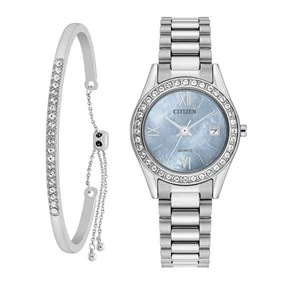 Citizen EU2680-52N Stainless Steel Crystal Watch And Bangle Gift Set - W9188