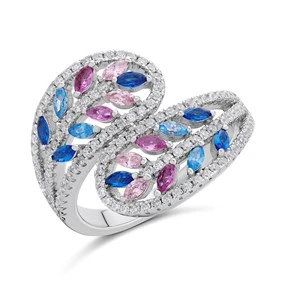 Briolette Silver Cubic Zirconia Crossover Band Ring - J77161 Matching Item Available Matching Item Available
