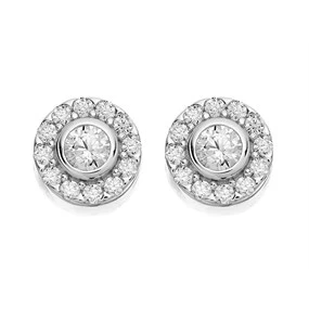 Silver Cubic Zirconia Halo Stud Earrings - 7mm - F04019