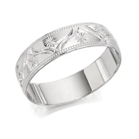 9ct White Gold Diamond Cut Wedding Ring - 6mm - R2401 Made in the UK Made in the UK