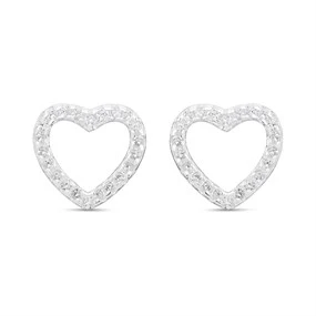 Silver Open Heart C.Z. Stud Earrings - 9mm - F04067