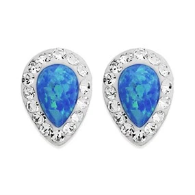 Silver Imitation Opal And Crystal Stud Earrings - 7mm - F04048