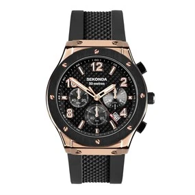Sekonda 30257 Rose Tone Black Silicone Strap Watch - W31412